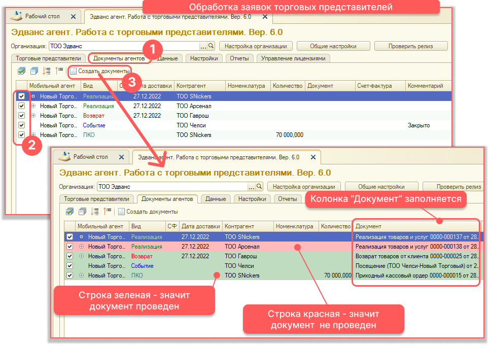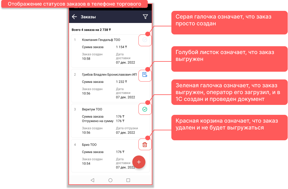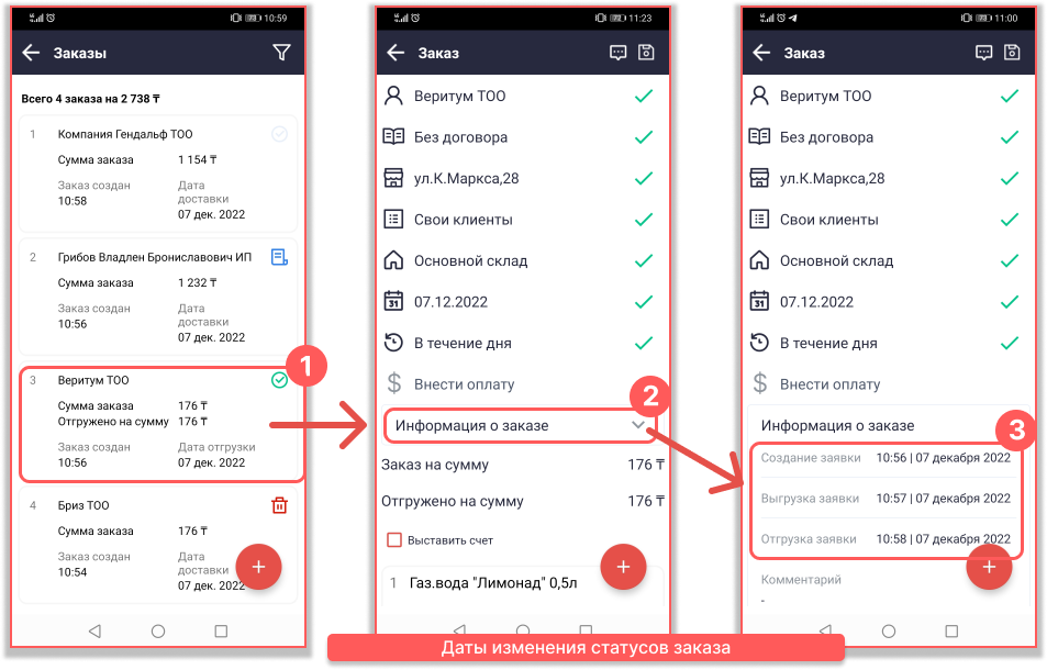 01.01.2022 г. торговый представитель создает три заказа в телефоне:
