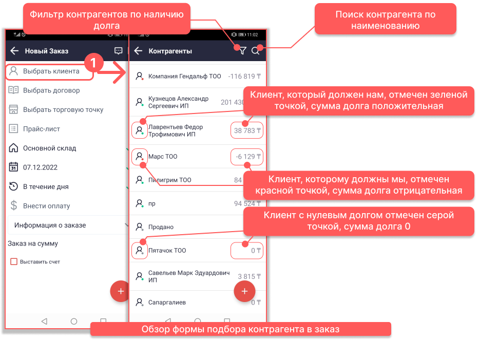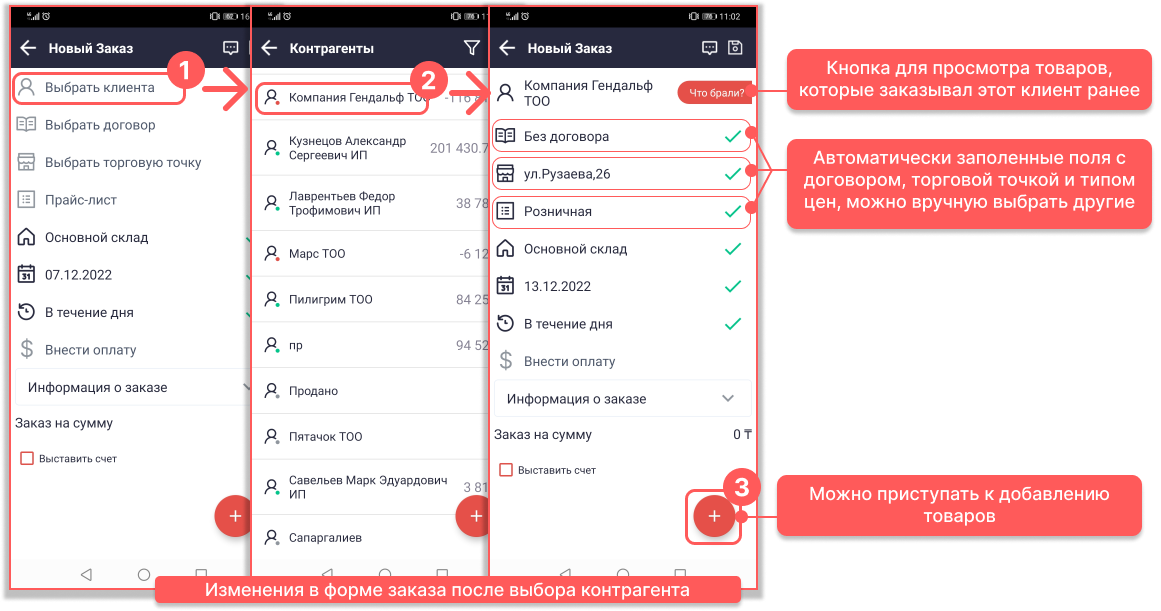 Настроек торгового представителя, указанных в 1С. Заполненные поля отличаются от незаполненных цветом и наличием зеленой галочки.