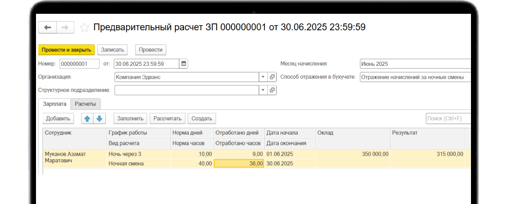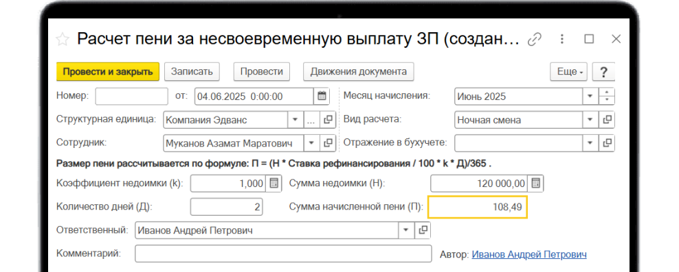 Функционал расширяет возможности при расчёте зарплаты сотрудников. Можно сделать рачет по различным видам начислений: по отработанным часам дневным, ночным, праздничным, сверхурочным и любым другим которые укажет пользователь. Также есть возможность расчёта пени за несвоевременную выплату зарплаты