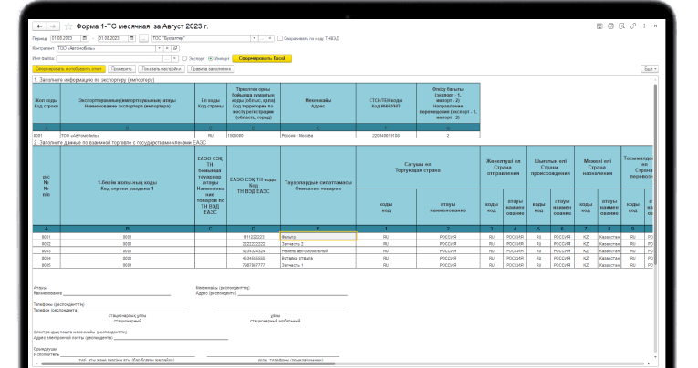 Отчёт предназначен для организаций, осуществляющих взаимную торговлю со странами ЕАЭС. Отчёт можно экспортировать в Excel и загрузить на сайт Управления статистики