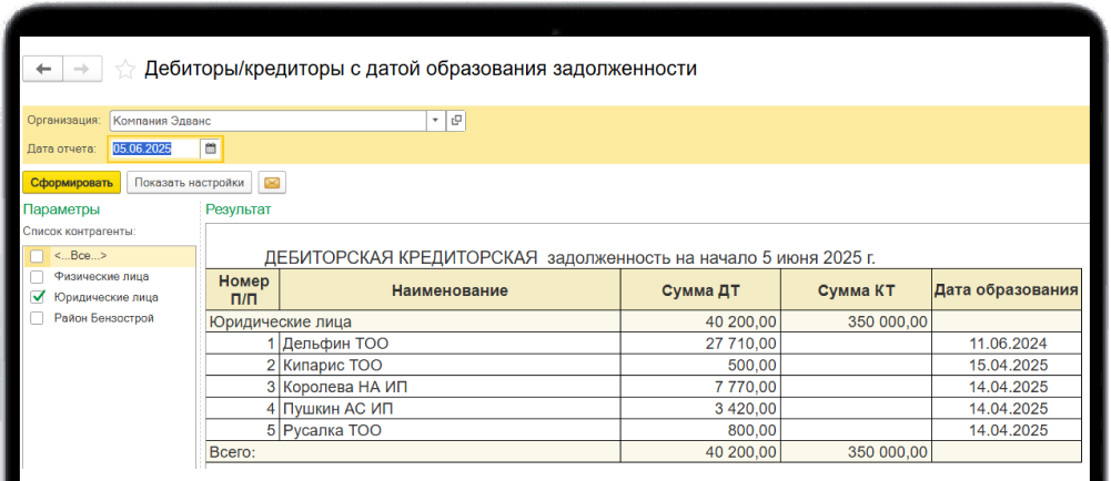 Отчёт Дебиторы/кредиторы с датой образования задолженности